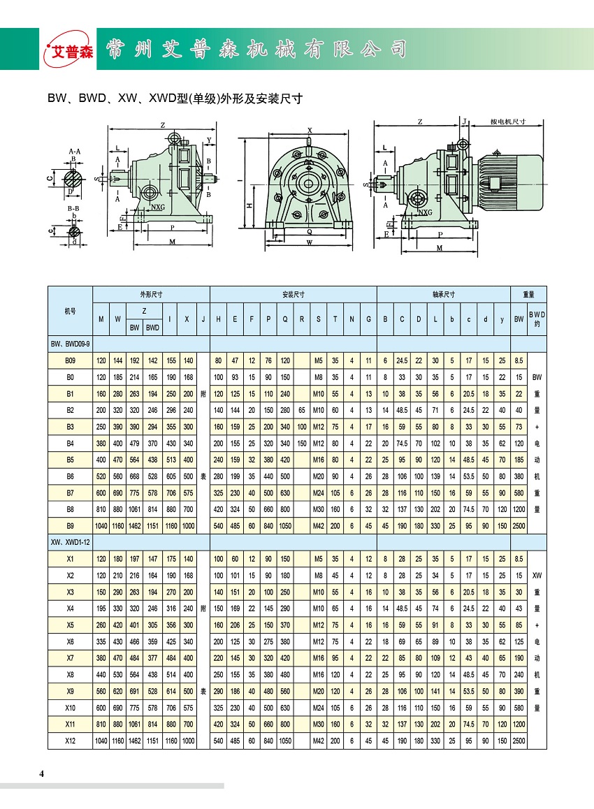 B系列 (化工部標(biāo)準(zhǔn)) 擺線針輪減速機(jī)按照電機(jī)連接方式定義有以下系列型號(hào): B系列擺線針輪減速機(jī)型號(hào)大全,B系列擺線減速機(jī)分為單級(jí)減速機(jī)和雙級(jí)減速機(jī)和三級(jí)減速機(jī),安照安裝形式不同分為立式和臥室擺線針輪減速機(jī)。下面為您詳細(xì)的介紹江蘇減速機(jī)市場(chǎng)生產(chǎn)的具體型號(hào): BW擺線針輪減速機(jī)(單級(jí)臥式雙軸型)型號(hào):BW0、BW1、BW2、BW3、BW4、BW5、BW6、BW7、BW8、BW9、BW10、BW11、BW12 BWY擺線針輪減速機(jī)(單級(jí)臥式電機(jī)法蘭盤直聯(lián))型號(hào):BWY1、BWY2、BWY3、BWK4、BWY5、BWK6、BWY7、BWY8、BWY9、BWY10、BWY11、BWY12 BWD擺線針輪減速機(jī)(單級(jí)臥式直聯(lián)型)型號(hào):BWD1、BWD2、BWD3、BWD4、BWD5、BWD6、BWD7、BWD8、BWD9、BWD10、BWD11、BWD12 BL擺線針輪減速機(jī)(單級(jí)立式雙軸型)型號(hào):BL0、BL1、BL2、BL3、BL4、BL5、BL6、BL7、BL8、BL9、BL10、BL11、BL12 BLY擺線針輪減速機(jī)(單級(jí)立式接盤型)型號(hào):BLY1、BLY2、BLY3、BLY4、BLY5、BLY6、BLY7、BLY8、BLY9、BLY10、BLY11、BLY12 BLD擺線針輪減速機(jī)(單級(jí)立式電機(jī)法蘭盤直聯(lián))型號(hào):BLD1、BLD2、BLD3、BLD4、BLD5、BLD6、BLD7、BLD8、BLD9、BLD10、BLD11、BLD12 BWE擺線針輪減速機(jī)(雙級(jí)臥式雙軸型)型號(hào):BWE20、BWE32、BWE42、BWE53、BWE63、BXWE74、BWE84、BWE85、BWE95、BWE106、BWE128 BWEY擺線針輪減速機(jī)(雙級(jí)臥式電機(jī)法蘭盤連接)型號(hào):BWEY20、BWEY32、BWEY42、BWEY53、BWEY63、BWEY74、BWEY84、BWEY85、BWEY95、BWEY106、BWEY128 BWED擺線針輪減速機(jī)(雙級(jí)臥式電機(jī)法蘭盤連接)型號(hào):BWED20、BWED32、BWED42、BWED53、BWED63、BWED74、BWED84、BWED85、BWED95、BWED106、BWED128 BLE行星擺線針輪減速機(jī)(雙級(jí)立式雙軸型)型號(hào):BLE20、BLE32、BLE42、BLE53、BLE63、BLE74、BLE84、BLE85、BLE95、BLE106、BLE128 BLEY擺線針輪減速機(jī)(雙級(jí)立式專用電機(jī)直聯(lián)型)型號(hào):BLEY20、BLEY32、BLEY42、BLEY53、BLEY63、BLEY74、BLEY84、BLEY85、BLEY95、BLEY106、BLEY128 雙級(jí)立式電機(jī)直聯(lián)型BLED擺線針輪減速機(jī):BLED20、BLED32、BLED42、BLED53、BLED63、BLED74、BLEDK84、BLED85、BLED95、BLED106、BLED128 BWD/XWD擺線針輪減速機(jī)實(shí)例圖